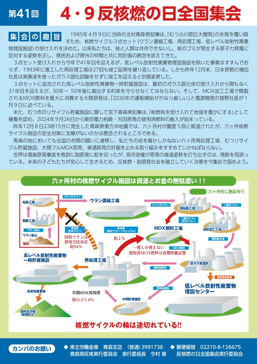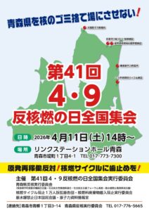 連絡先:「第41回4・9反核然の日全国集会」実行委員会(青森県反核実行委員会)